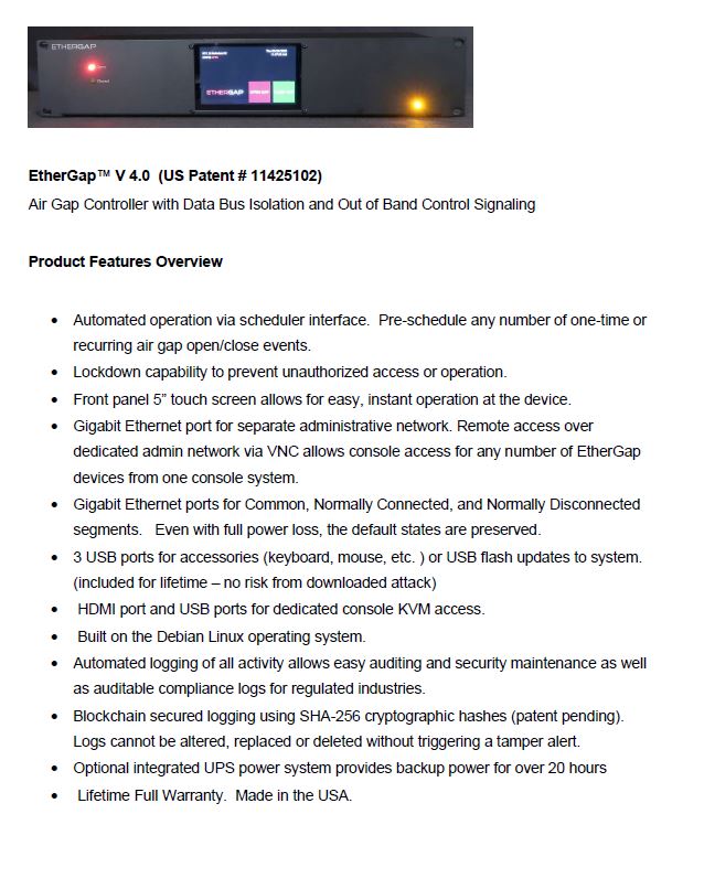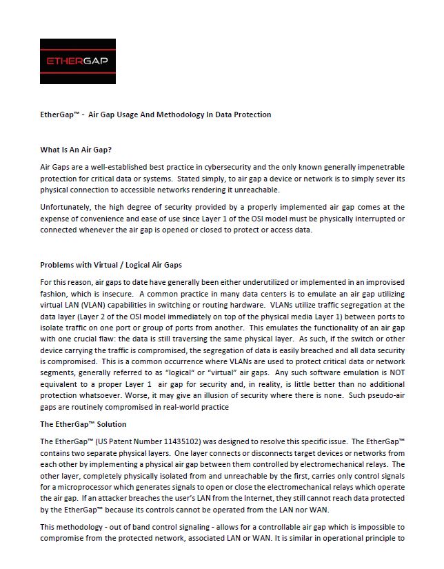 A 90 second overview of what makes the EtherGap the most effective network and data security device in existence.